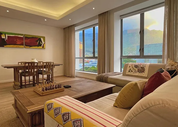 Oferecendo piscina ao ar livre, apartamento Mandela Rhodes Place Mountain Views Apartment Cbd está localizado a 2.1 km de Centro de Conferências e Eventos Avenue. Está situado a 600 metros da estação ferroviária de Cape Town e 50 metros de estação de ônibus Strand.